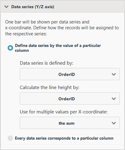 One bar will be shown per data series and x-coordinate. Define how the records will be assigned to the respective series.