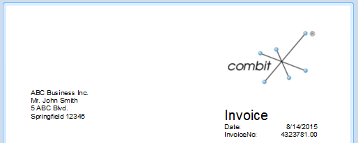 Use the text object again to add the text "Invoice", the invoice date and the invoice number to an invoice header.