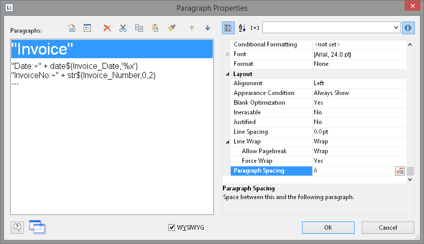 12. Now open the paragraph properties dialog via double-click to increase the distance to the next line. In this dialog, you can define the properties for each line. Set the value for the "Paragraph Spacing" property for the first line to 12 pt.