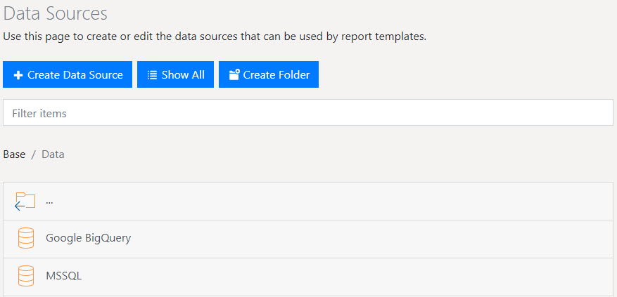 From here, new data sources can be defined or existing ones edited.