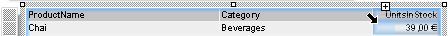 1. In the product category column title, the field name "CategoryName" is shown. Click the respective field in order to change this text to "Category". The formula wizard will now appear, which you can use to change the contents of the field. Please consider that text must be enclosed in quotation marks.