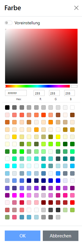 Auswahl vordefinierter Farben |