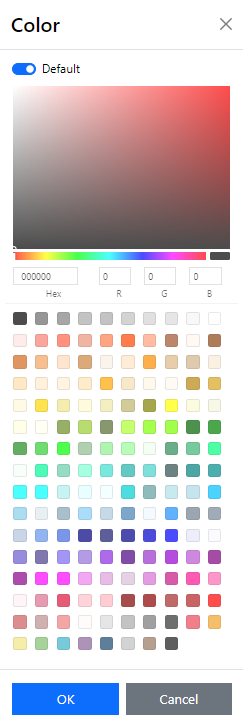 The color can be chosen from a fixed, predefined list of colors via a selection list or freely chosen via a formula or function. A dialog is available for defining the color.