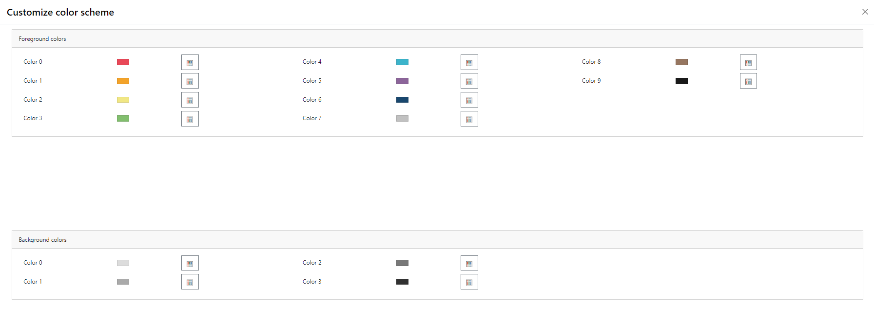Ten scheme colors for the foreground: available in objects as LL.Scheme.Color0…9 The color can be defined freely using a color dialog, a selection list with predefined colors or using a formula or function ("Formula" option at the end of the list). Use the RGB() or HSL() function for a function. |