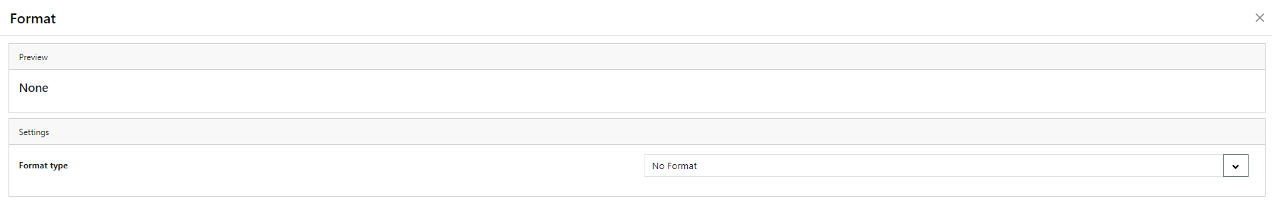 The format property is an alternative to formatting with the functions Date$() and Fstr$() in the formula dialog. This property can be found, for example, in text and table fields. Note that the formatting will affect the expression's result. If you only wish to format certain parts of an expression (e.g. for text and numbers within one expression) use the functions Date$(), LocCurrL$ or Fstr$() in the formula dialog.