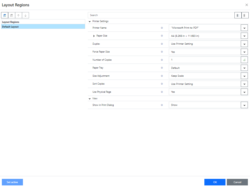 Your first task in a new project is to set up the page layout that you want. Choose Project > Layout Regions (Project > Page Setup) to specify properties such the choice of printer, paper size and orientation. There are different layout options depending on the project mode (label or list).