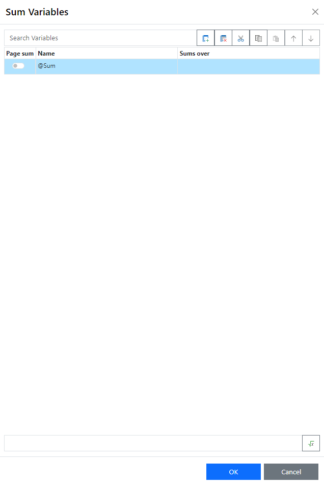 4. Click the Formula Wizard button to open the formula wizard and assign a field or an expression to the new sum variable.