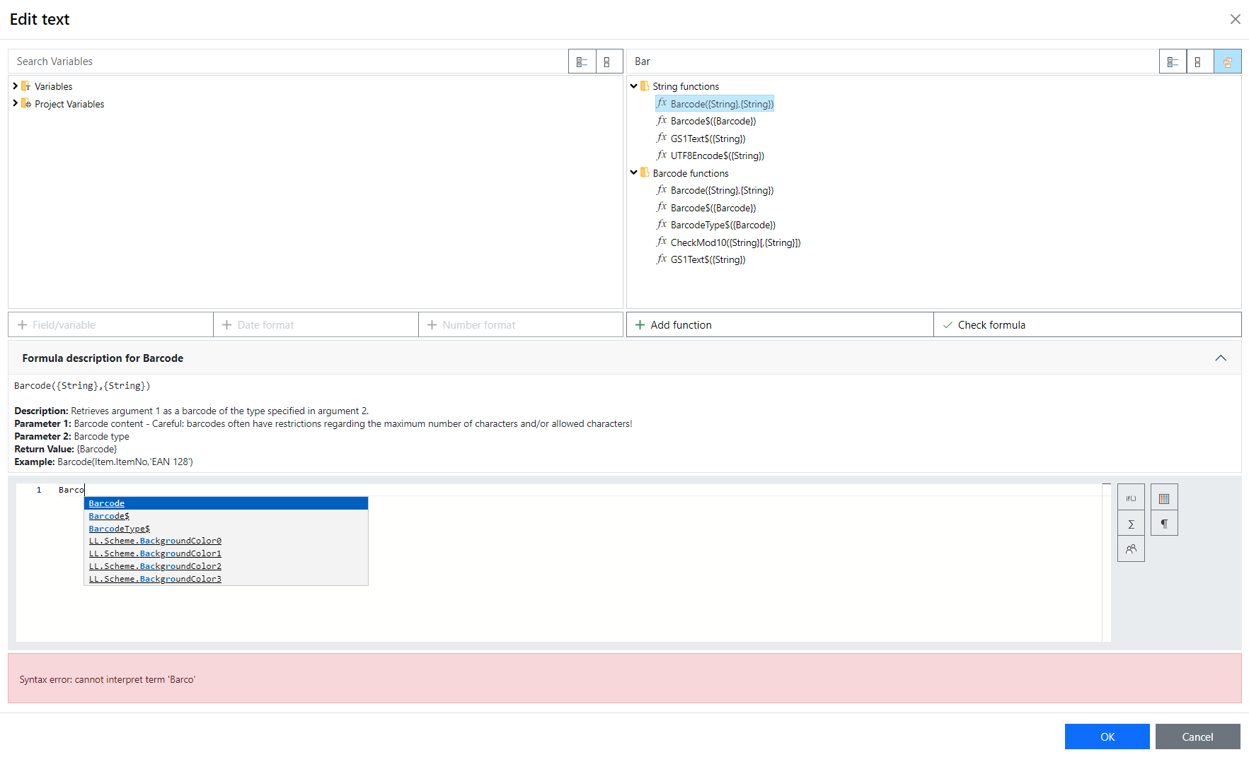 Figure 3.1: Autocomplete in the formula wizard